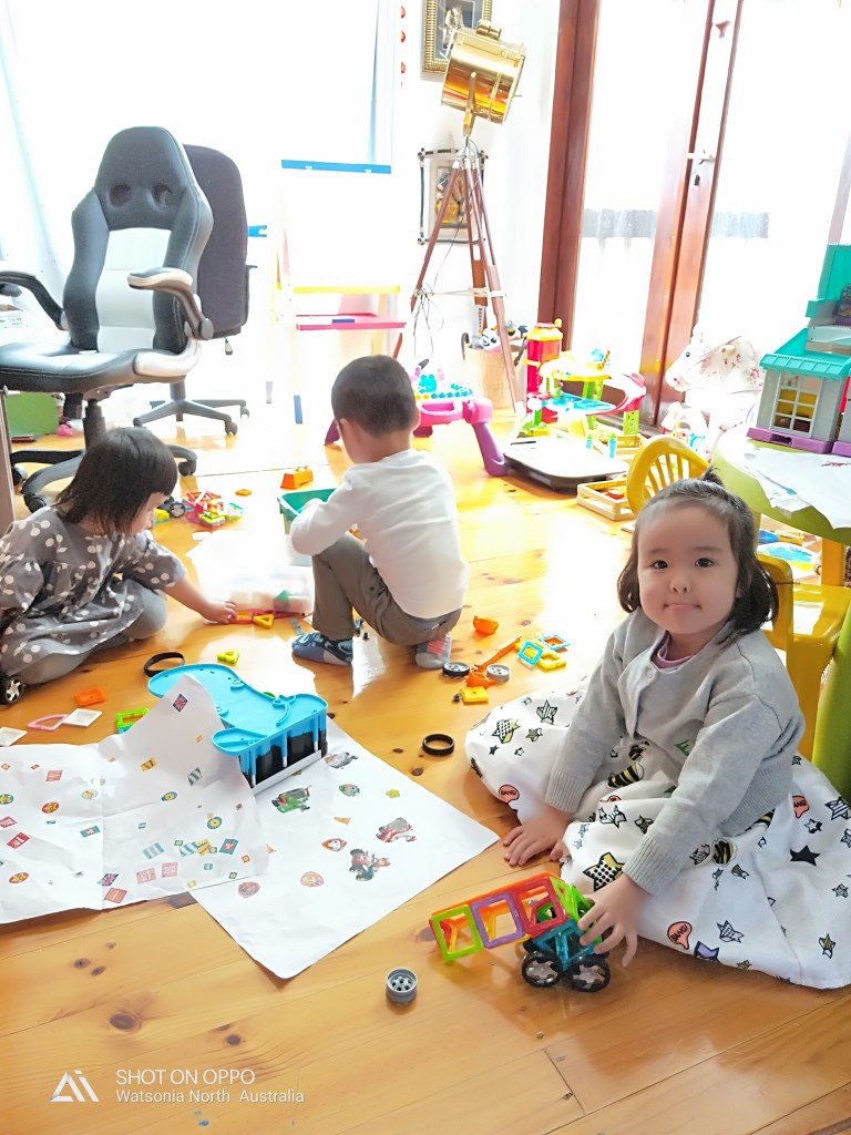 today kids had a lot fun, they played together with such good harmony. usually if it is only loki and char, they argue and fight on toys already, seems its not happening when there are more kids, perhaps it feels like childcare, and they don't fight in childcare...